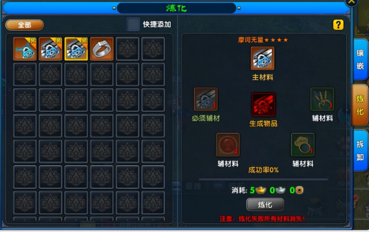 除了武器和防具,成长型首饰的炼化也是提升战力的关键一环。这类首饰无法通过精炼或镶嵌强化,只能依靠炼化升级,而炼化不仅需要核心的首饰装备,还需搭配一般辅材和必须辅材。